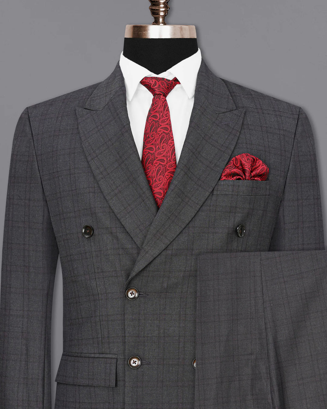 Men’s Premium Grey Check Double-Breasted Suit